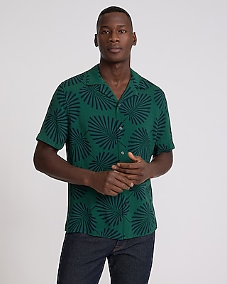 Palm Print Rayon Short Sleeve Shirt