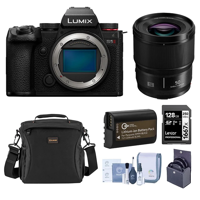 Panasonic Lumix S5 Ii Mirrorless Camera Bundle with 50mm f/1.8 Lens, 128GB Memory Card, Shoulder Bag, Battery Pack, Filter Kit, Cleaning Kit
