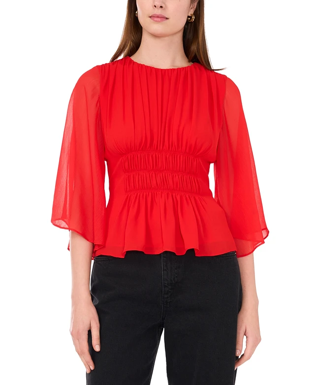 Parker Women's Mylah Shirred Long-Sleeve Crewneck Top