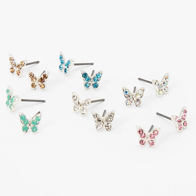 Pastel Crystal Butterfly Stud Earrings - 6 Pack