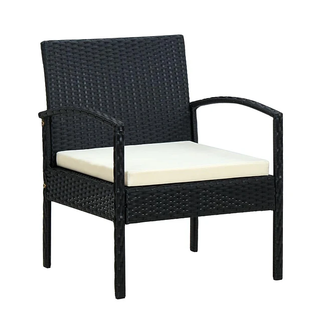 Patio Chairs with Cushions 2 pcs Black Poly Rattan