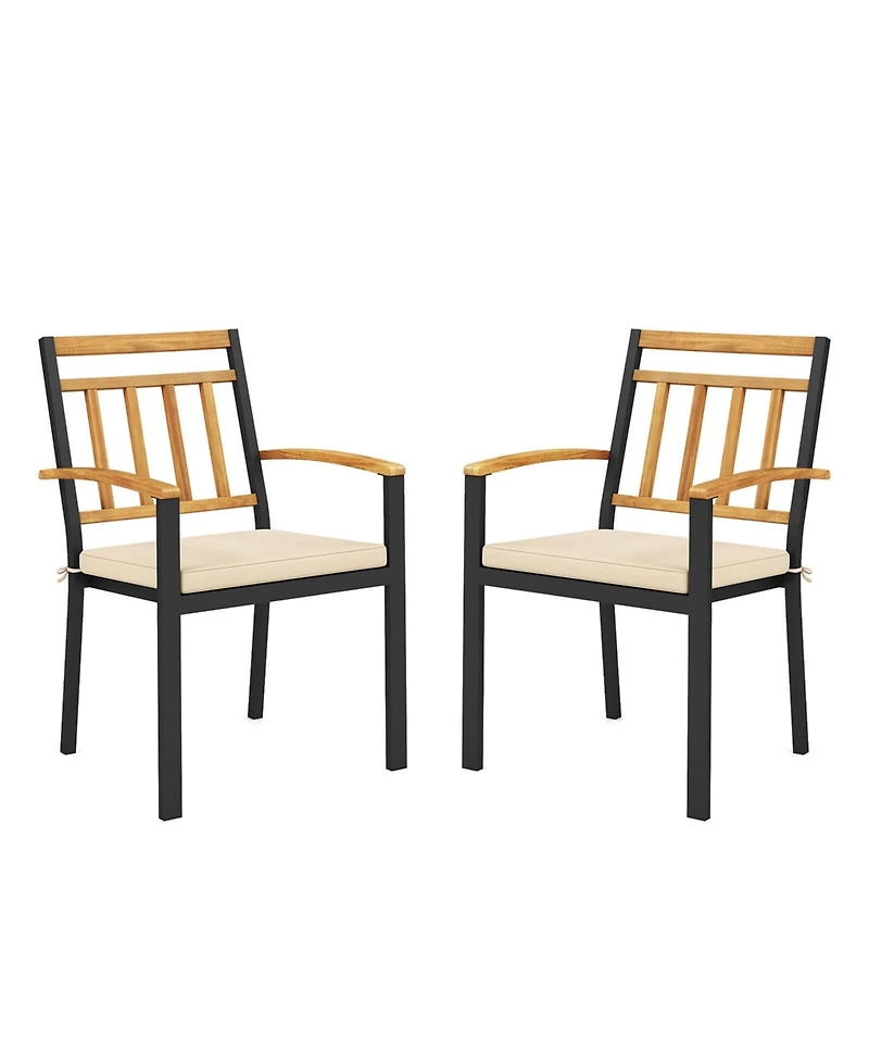 Patio Dining Chairs Set of 2 Metal Outdoor Chairs with Removable Padded Cushions
