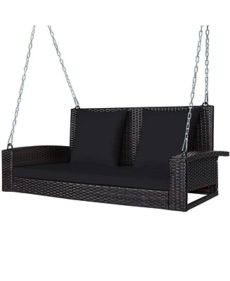 Patio Wicker Porch Swing 2-Person Hanging Loveseat Bench Chair with Cushions