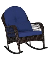 Patio Wicker Rocking Chair with Seat Back Cushions & Lumbar Pillow Porch