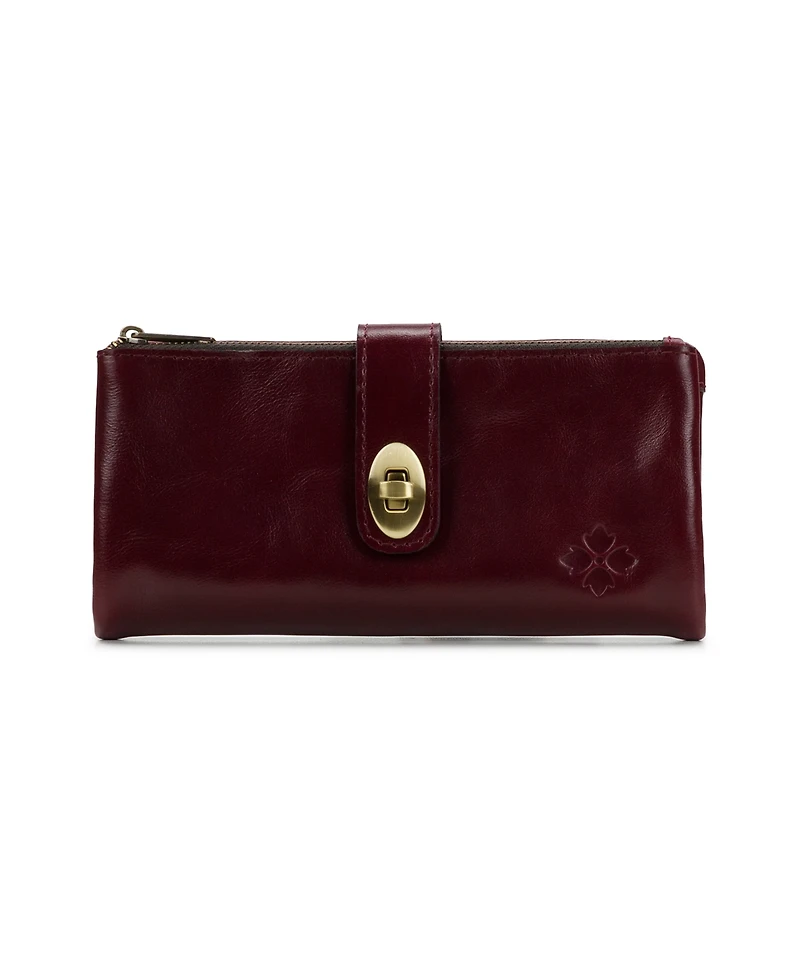This classically styled wallet by Patricia Nash features supple leather and expert artisanal craftsmanship. It includes multiple card slots and note compartments, along with a clear Id window. Its wristlet strap can be retracted when you don't need it.