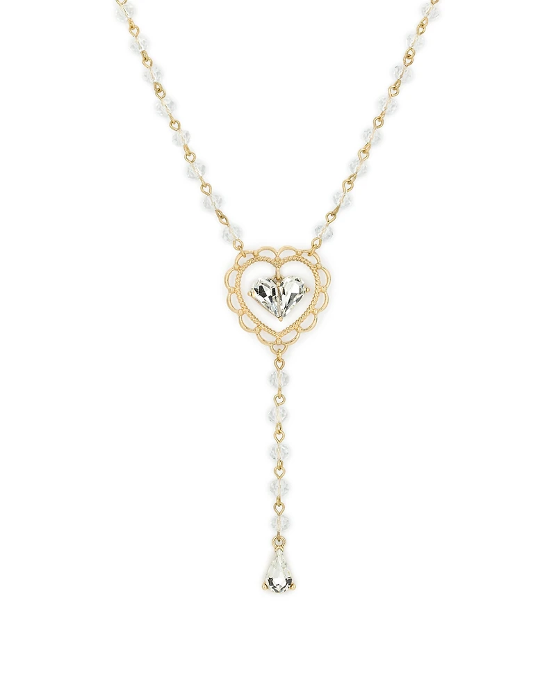 This gorgeous Y necklace features an intricate chain that comes together with a charming heart shaped pendant and charm that catches the light perfectly. Dainty detailing around the edges draws the eye, making this piece truly unique.