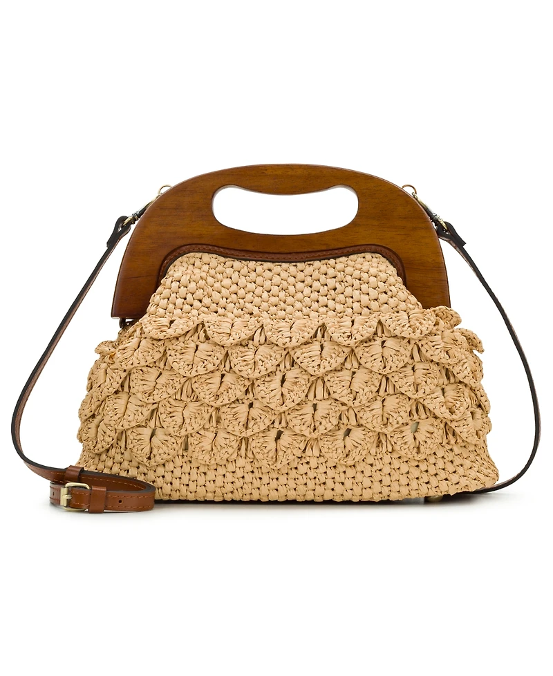 Patricia Nash Scalloped Raffia Medium Sandrine Wooden Frame Crossbody Bag