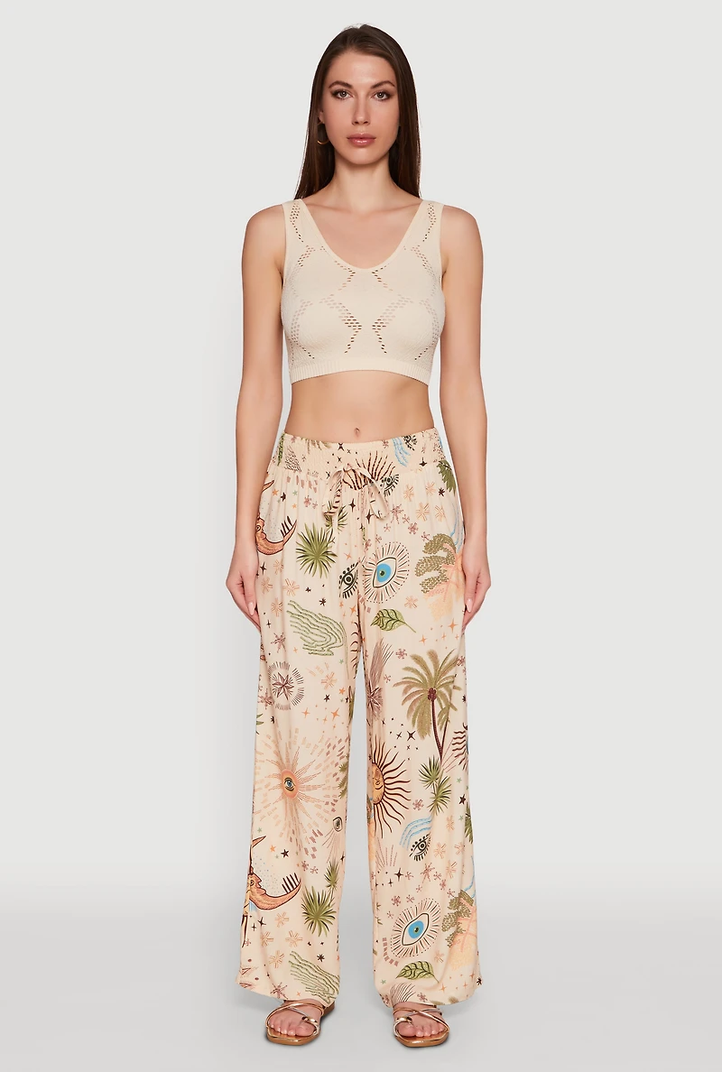 Patterned Faux Drawstring Smocked Waist Palazzo PantsPatterned Faux Drawstring Smocked Waist Palazzo PantsPatterned Faux Drawstring Smocked Waist Palazzo Pants