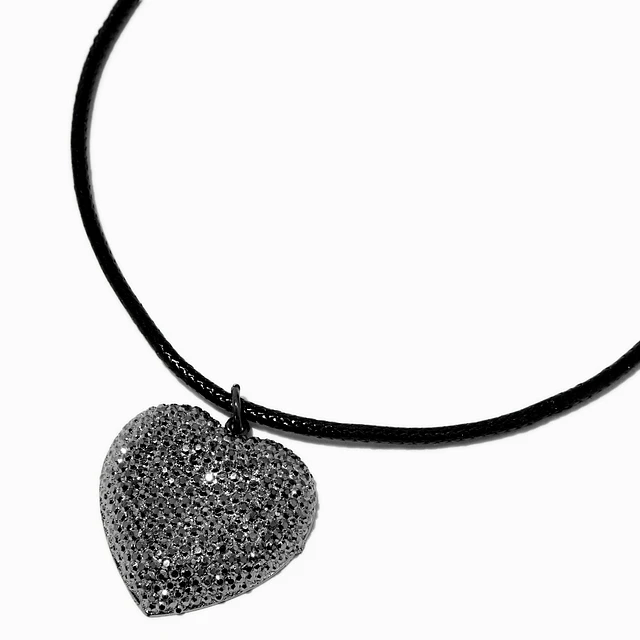 Silver-tone Pavé Crystal Heart Pendant Necklace
