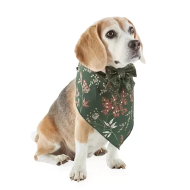 Paw & Tail Lrg Floral Bandanna Bow Set Dog Bandana