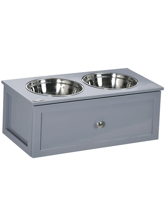PawHut Dog Feeding Station w/ Storage Drawer, 2 Elevated Bowls,