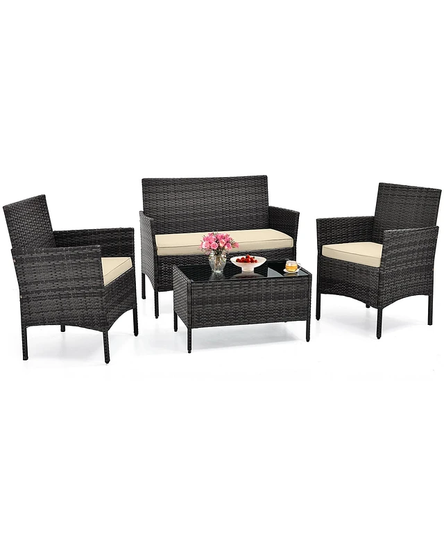 Costway 4 Pcs Patio Furniture Set Outdoor Conversation Sofa Tempered Glass Coffee Table