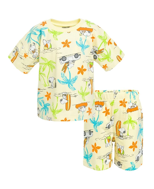 Peanuts Little Boys French Terry T-Shirt and Shorts Outfit Set