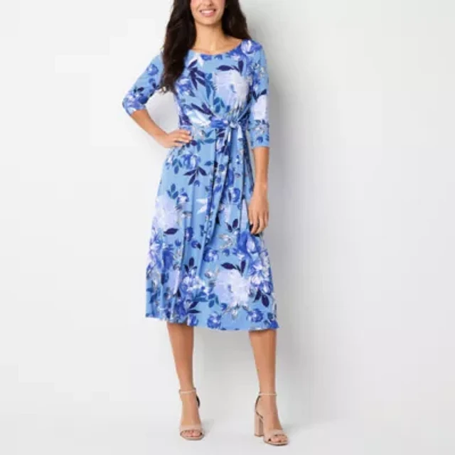 Melonie T Womens 3/4 Sleeve Floral Midi Fit + Flare Dress