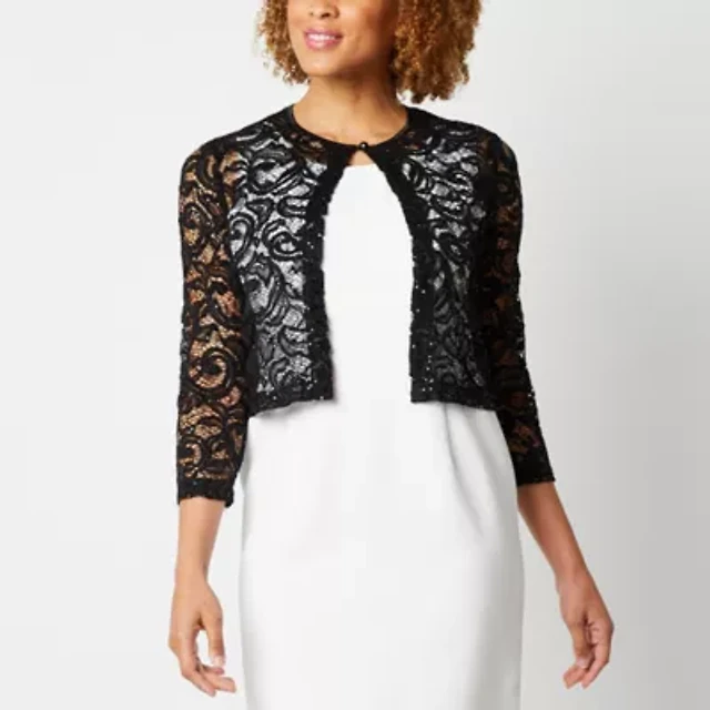 Perceptions Womens 3/4 Sleeve Sequin Lace Shrug