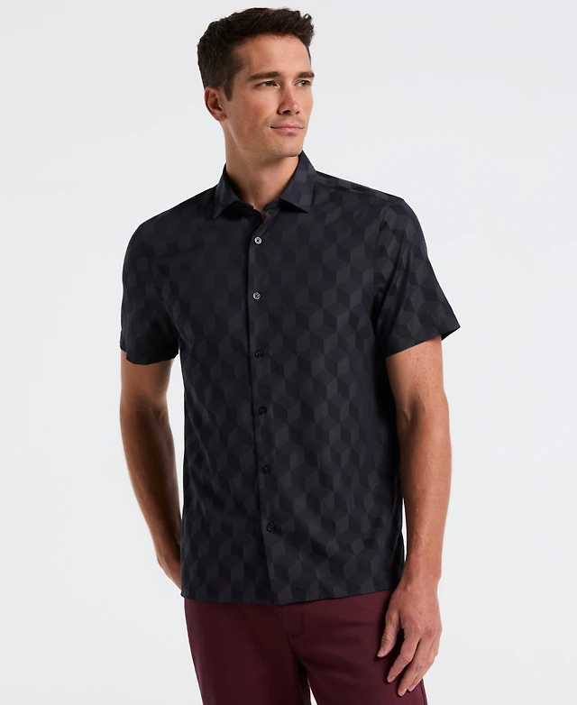 Perry Ellis Men's Short Sleeve Cube Geo Jacquard Shirt