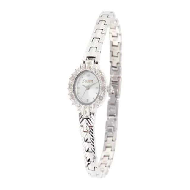 Personalized Dial Womens Diamond-Accent Oval Silver-Tone Bracelet Watch