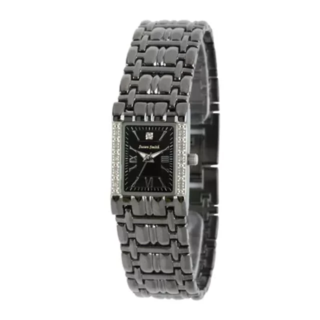 Personalized Dial Womens Diamond-Accent Square Black Bracelet Watch