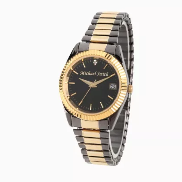 Personalized Mens Black And Gold Tone Diamond Accent Expansion Watch