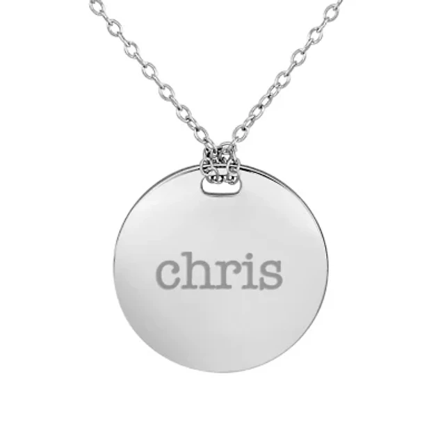 Personalized Sterling Silver 19mm Round Name Pendant Necklace