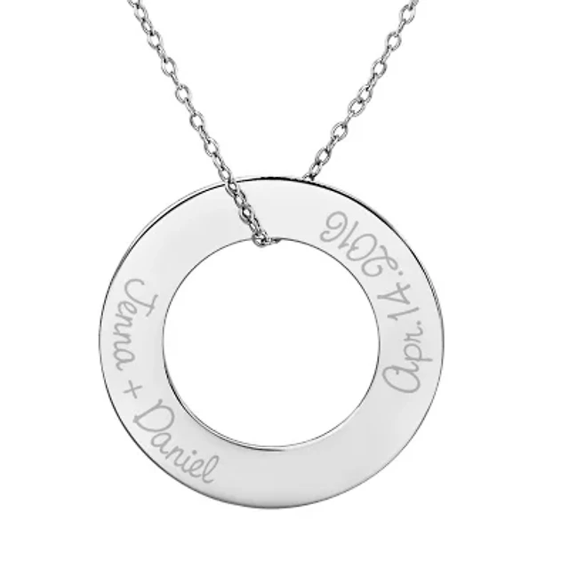 Personalized Sterling Silver 29mm Circle Couple's Name & Date Pendant Necklace