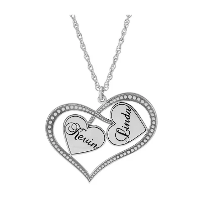 Personalized Sterling Silver Double Heart Couples Pendant Necklace