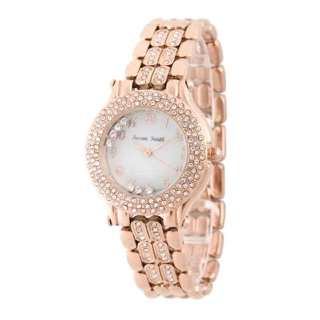 Personalized Womens Rose Gold Tone Crystal Accent Bracelet Watch