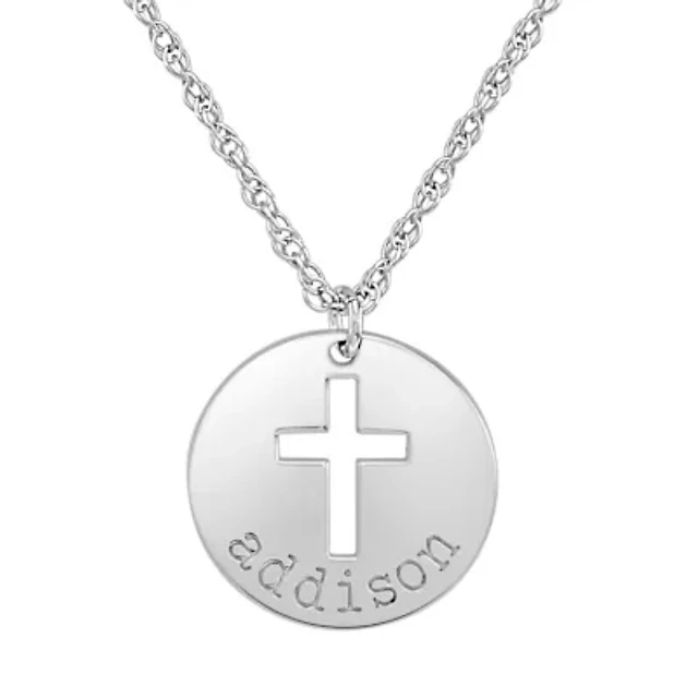 Personalized Womens Sterling Silver Cross Name Pendant Necklace