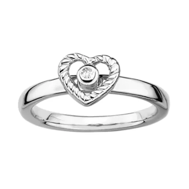 Womens Diamond Accent Natural White Sterling Silver Heart Delicate Stackable Ring
