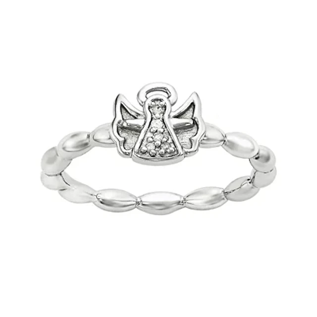Diamond-Accent Sterling Silver Stackable Angel Ring