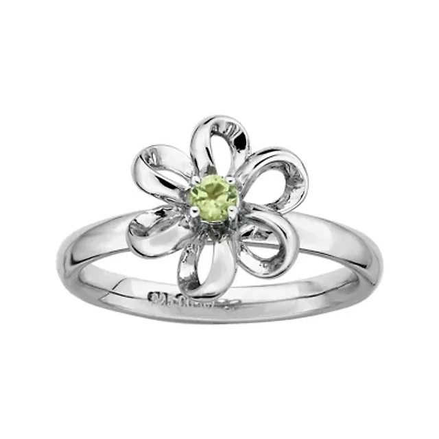 Personally Stackable Lab-Created Peridot Sterling Silver Flower Ring