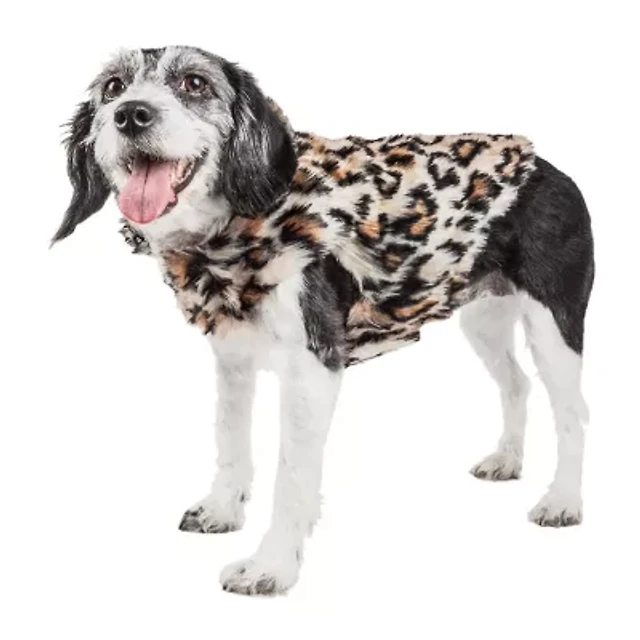 Pet Life ® Luxe 'Lab-Pard' Dazzling Leopard Patterned Faux Mink Fur Dog Coat Jacket