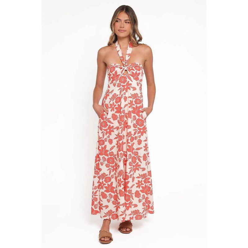Turn heads in the Cottrell Maxi Dress, your new go-to for sun-drenched days and warm nights. This stunning red floral piece features a flattering halter neckline that ties at the back for a perfect fit.