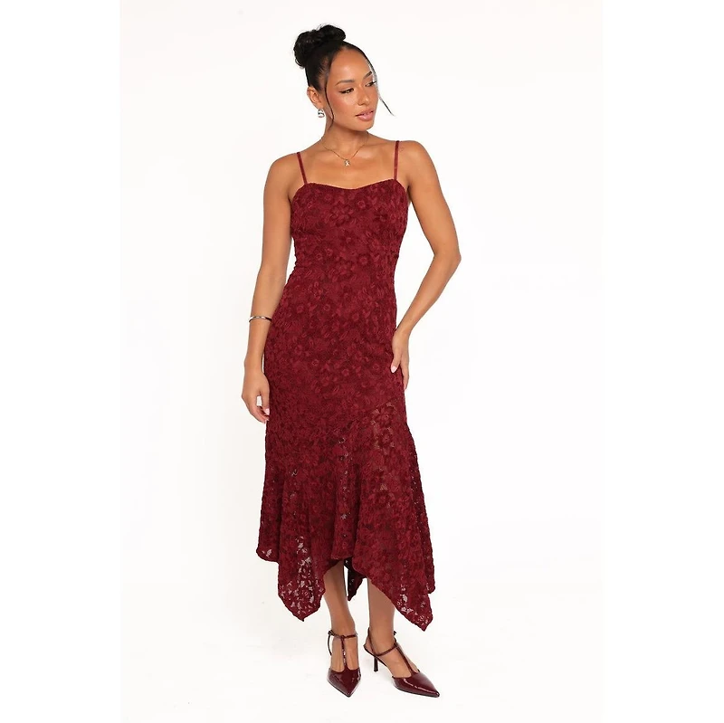 The Lorde Midi Dress in Burgundy Lace is your answer to effortless elegance with a modern edge. This stunning piece features a square neckline that beautifully frames your decolletage, while thin adjustable straps ensure the perfect fit every time.