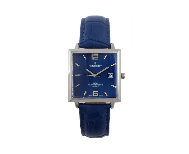 Peugeot Men's Modern 35x35mm Square Watch with Metal Case with Blue Leather Band