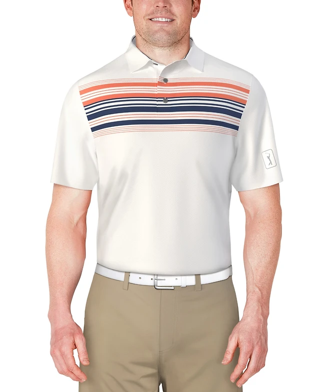 Pga Tour Men's Short Sleeve Chest Stripe Golf Polo Shirt