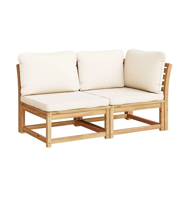 vidaXL 2-Person Solid Wood Acacia Cushioned Patio Sun Lounger