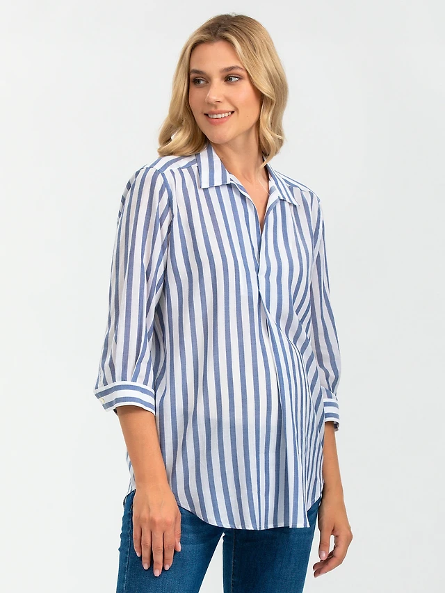 Pietro Brunelli Maternity Classic Collared 3/4 Sleeve Blouse Panarea