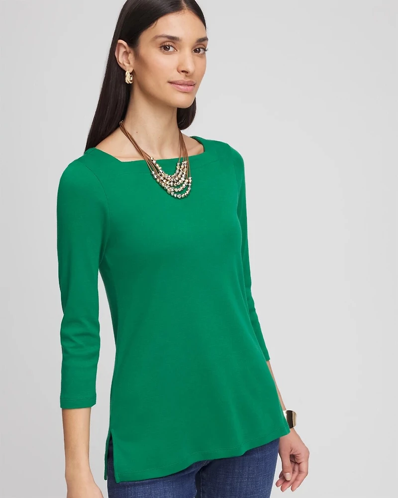 Take your tee look up a notch with our new Pima Cotton Bateau-Neck Tee with a super flattering silhouette. The beautiful bateau neckline and elbow-length sleeves elevate your casual look with comfort and ease. Crafted in a super-soft Pima Cotton making it ideal for everyday wear.