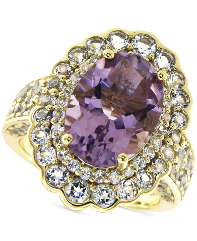 Pink Amethyst (5 ct. t.w.) & White Topaz (3-5/8 ct. t.w.) Halo Ring in Gold-Plated Sterling Silver