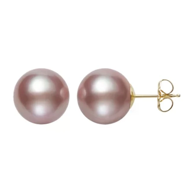 Pink Cultured Freshwater Pearl 14K Gold 12mm Ball Stud Earrings