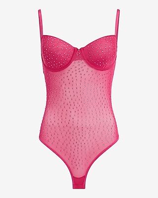 Rhinestone Embellished Mesh Bustier Bodysuit