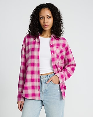 Plaid Satin Jacquard Cropped Boyfriend Portofino Shirt