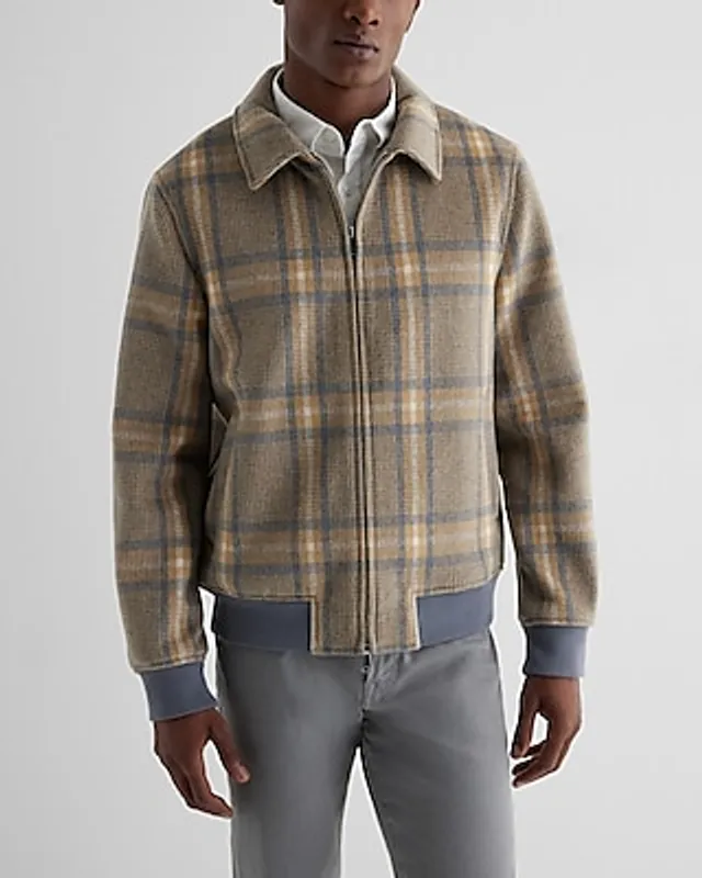 Slim Textured Plaid Boucle Bomber Suit Jacket