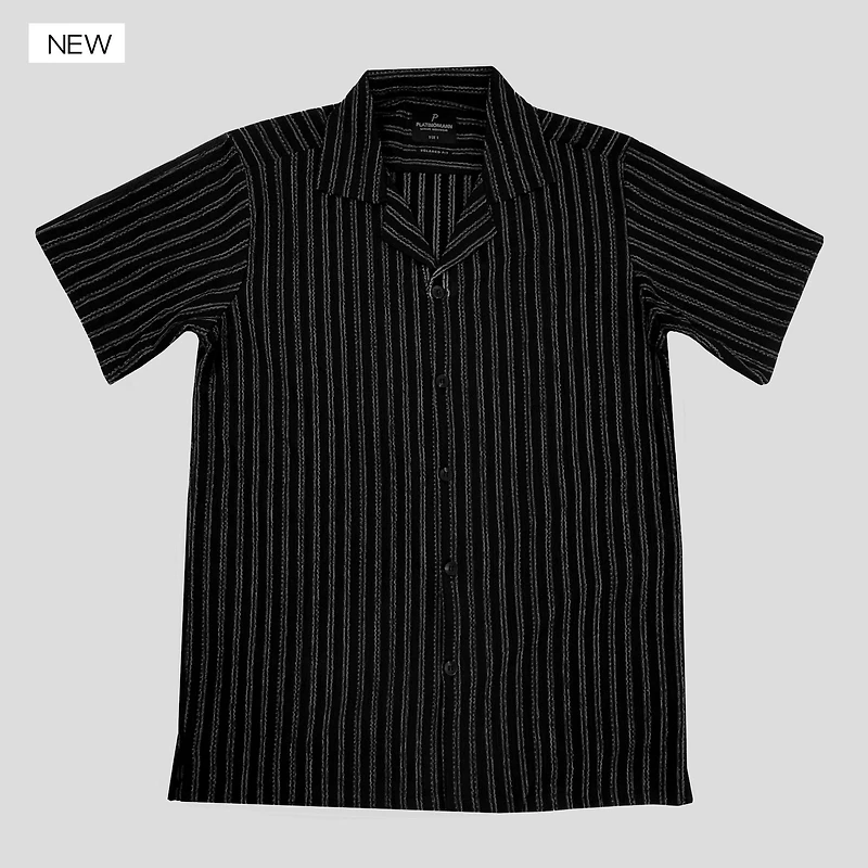 Camisa Platinomann de manga corta, confeccionada en una mezcla de poliéster y spandex que ofrece comodidad, ligereza y excelente ajuste. Su diseño de rayas verticales aporta un estilo moderno y versátil, ideal tanto para ocasiones casuales como para salidas más relajadas.