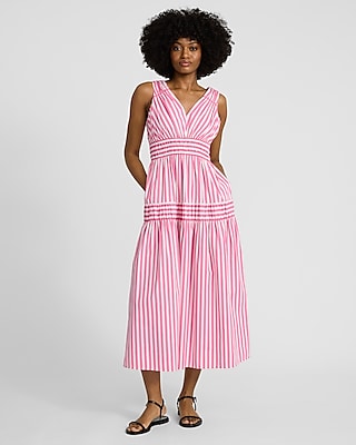 Smocked Striped Sleeveless Maxi Fit and Flare Dress