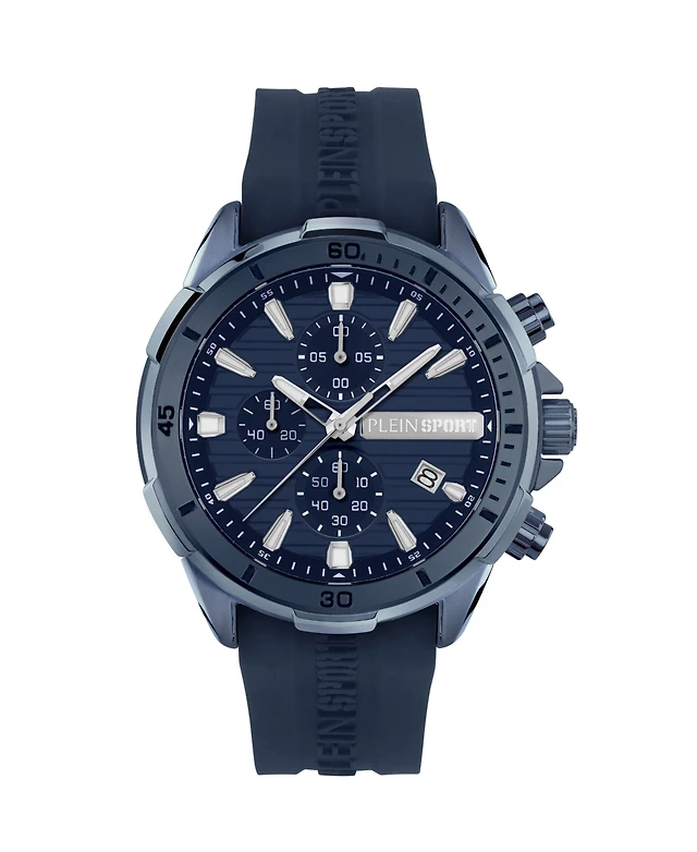 Plein Sport Mens Impact Chronograph Date Quartz Blue Silicone Strap 46MM