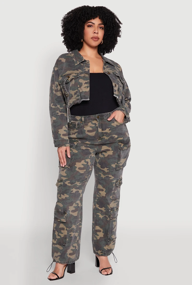 Plus Camo Denim Cargo Joggers