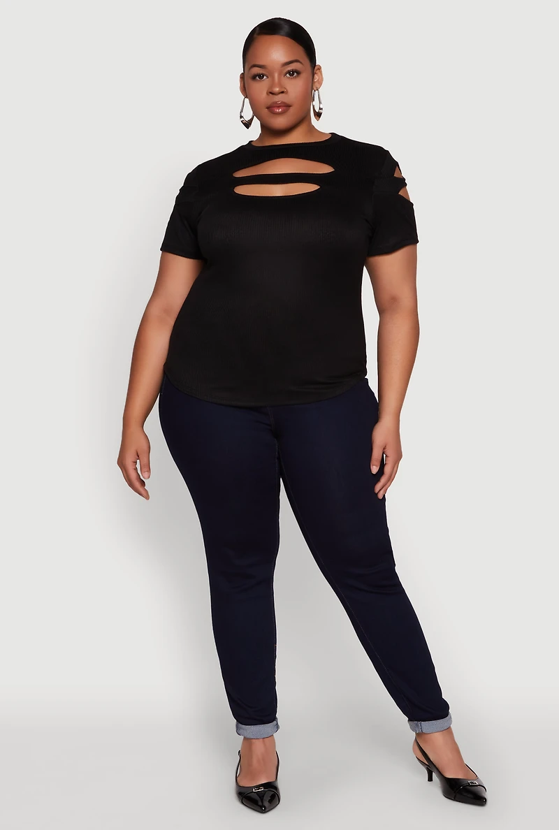 Plus Cut Out Detail Short Sleeve Top
