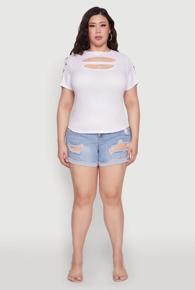 Plus Cut Out Detail Short Sleeve Top